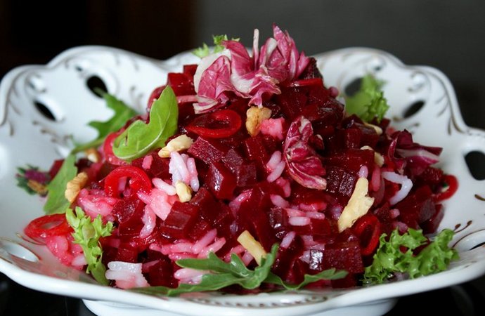 Ezért egyél húst, halat, tojást és származékait természetesen répafélékkel – salátákkal, amelyek kötelezőek ennek a zöldségnek rendben kell lennie. By the way, azok számára, akik nem szeretik cékla, javasolhatjuk, hogy az interneten keressen rá ételeket. Ezenkívül nemcsak nyers, hanem főtt saláták is lehetnek, párolt cékla – bármilyen formában hasznos, hőkezelés nem elpusztítja a benne lévő batanint.