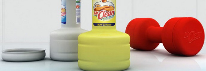 Súlyzó mosószer csomagolása. most a háziasszonyok nemcsak a konyhát letörölve képesek lesznek izmakat építeni lemez.