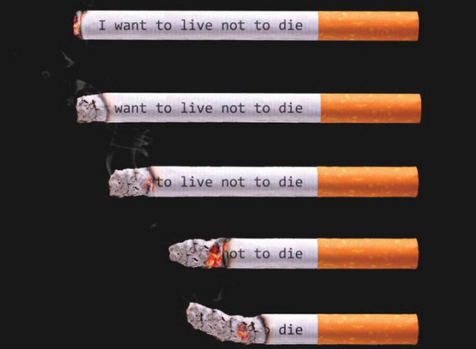 Cigaretta, amely füstölve megváltoztatja a feliratot “Élni akarok, nem akarok meghalni”, röviden – “meghalni”. Mindent megéri a cigaretta nyújt valami hasonlót …