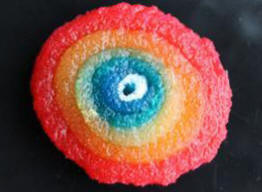 A benne lévő összes színes gyűrű telített a fehérjék selyemfehérjékből képeznek, amelyekben kollagéngél van. alak tele olyan neuronokkal, amelyek a gélen keresztül csírálják axonjaikat. Így az egyes axongyűrűk belső szerkezete az agy fehérjére és az idegsejtek idegsejtjeire hasonlít alkotják a szürke anyagot. Amikor több ilyen koncentrikus gyűrűk jönnek össze, kezdik hasonlítani a neuronrétegek igazi agy.