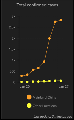 A Johns Hopkins Egyetem kutatói által összeállított térkép nyomon követi és vizualizálja a járványkitörési jelentéseket a Betegségmegelőzési és Megelőzési Központok, az Egészségügyi Világszervezet, a Kínai CDC és más források adatainak felhasználásával, földrajzi információs rendszerek feltérképezésével.