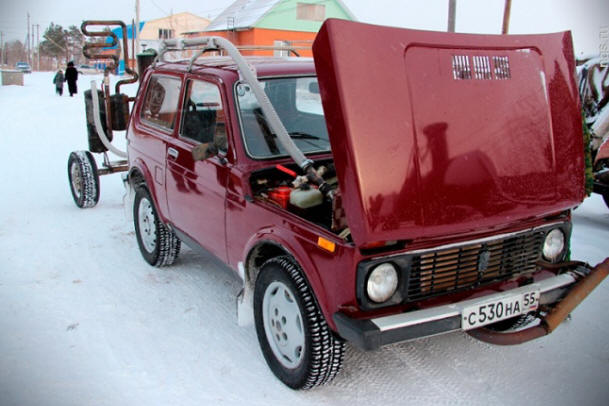 Фото изnyílt forráskódú Moskvich-2141 pirolízis-gázgenerátorral elment Muromtsevo kerületbe – 350 km-re az autó értékesítési pontjától. Az új tulajdonosnak három zacskó tűzifa volt – esetleg az üzemanyag hirtelen kifogy az úton. Próbavezetés közben “frissítette a” Niva “NGS tudósítójait. A NEWS észrevette, hogy megy egy autó, mint a szokásos gáz-propán. “De a hatalom egy kicsit minden elveszett. A 60 km / h sebességre gyorsítás nem nehéz, de fejleszteni kell nem kockáztattak nagy sebességgel – még nem hagyták el a pályát. Nos, és egy vontatott kályha néha sarkokba gördül be “- mondja Buzenius. A külső változások nem befolyásolták az autó belső tartalmát: A műszerfal és a belső tér változatlan maradt. Nem is éreztem üzemanyag szaga. Végül Cyril Buzenius mondta úgy döntött, hogy ilyen ökoautót hoz létre kísérletként. “Őseink Ilyen telepítéseken mentünk, úgy döntöttem, megpróbálom. Nos, mi … bármilyen szerves anyagon képes működni: akár mocsári tűzifával, akár lucfenyővel is kúpok és még trágya. Nagyon jó ilyen autót vezetni horgászat és vadászat: nem kell pénzt költenie az üzemanyagra “- foglalta össze ökoautó készítője.
