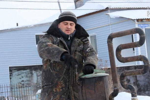 Fotó a Nyílt forráskódú “Tehát kiderül, hogy magas hőmérsékletű kémiai reakció – pirolízis. Látja, égnek szenek, – jelzi Omsk körülbelül 10 cm átmérőjű lyukon – kiderül, hogy hidrogén és szén-monoxid, és égés után a szén-dioxid elhagyja a kipufogócsövet gáz és vízgőz. Valójában ez egy ökoautó: nem árt a szemének, hanem különleges nincs szaga. A kályha megvilágításához ki kell nyitnia a piros csapokat, be Helyezze be a ventilátor furatát, töltse fel az üzemanyagot és tegye tüzet. ”