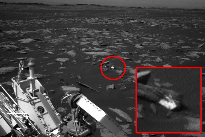 Vegye figyelembe, hogy ez nem az első nyúl, amelyet a fényképeken találtak, ezt az amerikai Mars rover küldte a Földre. Például a 2004-es Meredian-fennsík virtuális panorámás fennsíkja a régészek egy könnyű szerkezetet is észleltek, amely nagyon hasonló a nyúl.