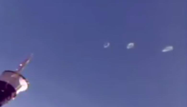 Az ufológusok, Brett és Blake Cousins testvérek élőben figyelték webkamerák, amelyeket a Nemzetközi Tér fedélzetére telepítettek állomáson, és hirtelen észrevette, hogy valami esett a lencsébe furcsa. Három titokzatos rendellenesség, amelyek megjelenése óriási fehér füst gyűrűk repültek a föld felé.