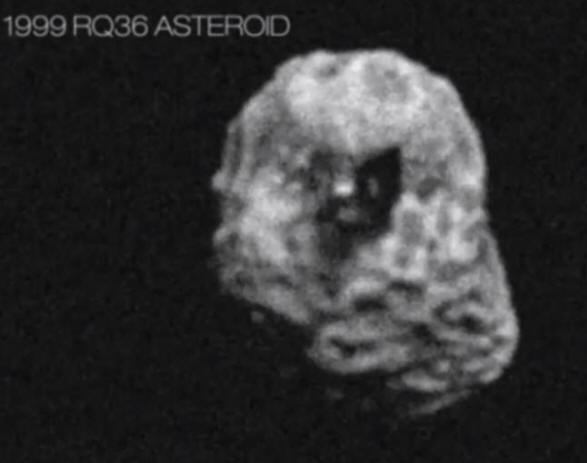 Kíváncsi felvételek jelentek meg az interneten. Rájuk van egy aszteroida 101955, más néven 1999 RQ36. Az aszteroida fordul. És az lesz látható: egy fekete piramis kilóg belőle. A szürke színben jól látható maga az aszteroida háttere. A piramisban négy oldal van, a teteje sík. Az egyik oldalon világos, téglalap alakú folt található. Mintha lőrés.