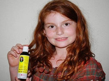 A 8 éves Allana Myers szeretett folyamatosan kerékpározni hazavérrel festett térdrel jött haza az anya állandóan bekötözve. A kötszerek eltávolításának folyamata fájdalmas volt. Miután kiáltottál 10 l. könnyek, a lány jött egy eszközzel, amely ezt teszi a folyamat fájdalommentes. A termék összetétele víz, levendula olaj és szappan.