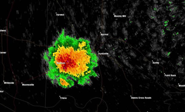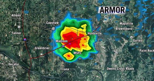 És itt egy lövés a buborékból, amely a Redstone Arsenal bázisa fölött merült fel