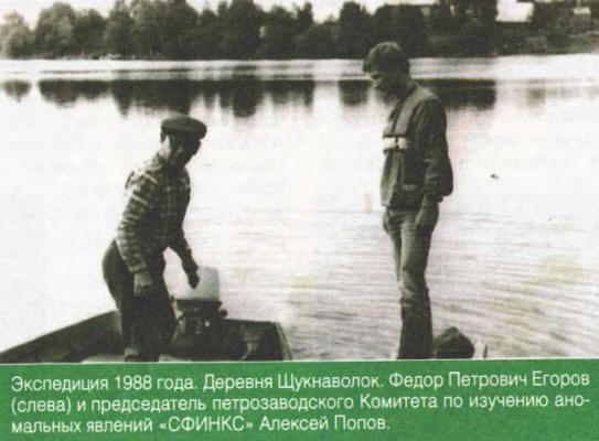 Shchuknavolok karéliai falu lakosai már régóta izgatottak lény, amely a közeli Vedlozero tóban telepedett le. Hogy elmondjam ennek a jelenségnek a történelemét a híres karéliai néprajz vállalta, író és utazó, Aleksey POPOV. – Alexey, vele mi kezdte a történetet egy furcsa lény megjelenéséről a tóban? – Nevetni fogsz, de az egész egy UFO-val kezdődött. Pontosabban, a egy hengeres tárgy, amely sötét 1928 őszén, a semmiből érkezett, Vedlozeroba zuhant. Általában a dolgok ilyenek tanúk nélkül történik, de ezúttal szokatlan jelenség megfigyelte Schuknavolok és Vedlozero falvak ötven lakosát. – azóta több mint nyolcvanöt év telt el. Hogyan hallottál erről? incidens? – Valójában ismertté váltak azok az évek eseményei egy helyi lakos, Fedor Petrovich Egorov emlékeinek köszönhetően, akivel fiatalkoromban volt esélyem kommunikálni. Abban az évben neki csak kilenc éves volt, de az emlékezet mindent megőrzött egy csodálatos esemény részletei. Olvastam egy részletét az övéből emlékiratok: “Az esemény az NKVD-nek ismertté vált, és gyakorlatilag azonnal egy speciális csoport érkezett Schuknavolokba. A csekisták elfoglaltak az esemény területe. Ezért mindent a legszigorúbb bizalommal tartottak: olykor, amikor maga is tudja, milyen … A technikák megfelelő megvizsgálni a tó fenekét, nem is beszélve egy tárgy emeléséről a vízből, nem Ez volt. Csak azt tudták, hogy hetvenven évesen fekszik centiméterre a tó felületétől – a fiúk ott úsztak, és a halászok álltak rajta, leszerelték a hálókat. “- Nem az volt klasszikus lemez? – Nem, ez egy fém henger volt! Egy szemtanú elmondta, hogy november 15-én este egy erdő mögül jelent meg hatalmas, gazdag parasztház méretű, sima henger a helyes forma. Csendesen és nagyon halkan repült a falusiak fölött alacsony sebesség. Vedlozero addigra már jég borította. A tárgy jégtört és a vízbe esett a Shchuknavolokkal szemben. az emelkedő a hullám egy közeli sziget egy részét lebontotta. A tó mélysége ebben észrevette a hét-nyolc métert, és az elesett tárgy csak nem szállt ki a víz felett. Emiatt a helyieknek kellett mozgatni a halakat Fogok egy másik helyen – a hálók a hengerhez tapadtak. – utána Valami szokatlan történt ezeken a helyeken? – C a henger éppen megkezdődött! Öt évvel később, Shchuknavolok faluban érthetetlen dolgok kezdtek történni. Például 1933-ban furcsa, zselés eső ömlött a falu fölé. Egy helyi tanács alapján A gyógyító lakók palackokban gyűjtötték és felhasználták orvosi kenőcs. Azt mondták, hogy a háború idején ez a gyógyszer segített gyógyítani a legsúlyosabb sebeket. 1937 körül – a Vedlozero víz a sziget mellett, amely mögött az objektum esett, – az idő többszínű világító körök jelentek meg. Néha ők pulzál, néha egy láthatatlan központ körül. De a legtöbb meglepő, hogy ezeknek a köröknek a megjelenése befolyásolta a munkát TV-k és rádió – erős zavarok jelentkeztek. – Mindez nagyon jó érdekes, de miről beszél a goblin vagy a víz? Tanúi? – A helyzet az, hogy ugyanazon 1933-tól kezdve helyi a lakosok a tó partján találkoztak egy furcsa teremtménymérővel növekedés – vékony, nagy fejjel. A teste és a karjai voltak aránytalanul hosszú, a lábak éppen ellenkezőleg, rövidek. A mellény, a leírás szerint, szorosan illeszkedő jumpsuitra hasonlított. A lény általában csendesen ült a parton. Először a helyi a gyerekek kövekkel dobtak rá, majd megszokták. Sőt, a megfigyelés ez a furcsa teremtés a mai napig folytatódik! – Miért elmész valamit? Inkább egy vizes. – A név lámpával jelenik meg a Leningrádi Tudományos Egyesület expedíciójának tagjai “Kriptobiológia”, aki kutatásokat végzett a Vedlozero régióban 1990-ben. Aztán megkeresték a nagylábot, és megtaláltak Goblin. A kriptobiológusok szerint szemtanúk voltak a karéliai zavarról rendszeresen láttak három méteres lényeket. Mindent osztályozva megfigyelések, a tudósok arra a következtetésre jutottak, hogy előtte leírás „Az ember barlang”. Vagy Bigfoot, ahogy hívják népszerű tudományos irodalom. A szláv folklórban egy teremtett lény az ilyen “tulajdonságokat” ördögnek hívták. A tudósok megjegyezték hogy amikor az ország északnyugati részén hófigyeltek ember, pontosan Karélia területéről jelent meg!