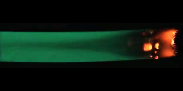 Fagyasztható képkocka a Saffire-II kísérlet videójából a láng terjedésének tanulmányozására az űrben a Cygnus teherhajó fedélzetén