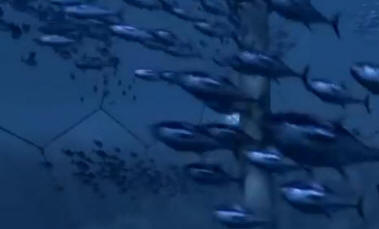 Ez az Oceansphere – egy hatalmas, nagymértékben automatizált hal egy olyan gazdaság, amely 1000 tonna tonhalot termel 400 mélységben néhány méterre Hawaii partjától.