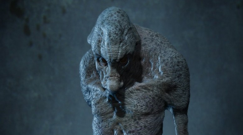 A húsos, kékes arca határozottan undorítónak tűnt: egy sima orr, egy apró száj alatta, vagy inkább ajak nélküli keskeny nyílás. Egy idegen kezét az emberi normák szerint aránytalanul hosszú. Rájuk szorított egy tárgyat, célja Michael …