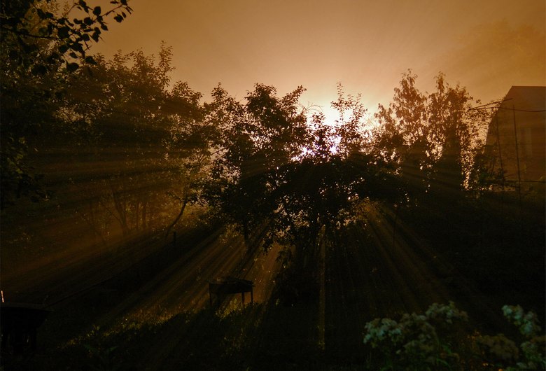 Nem messze a kerttől, egy magas és sziklás folyóparton állt elhagyott templom. Miután üzleti életben elvitte, Misha nem vette észre azonnal a templom romjaiból a kert felé az égen egy nagy mozog szivar alakú tárgy, sok testén élénk fényekkel.