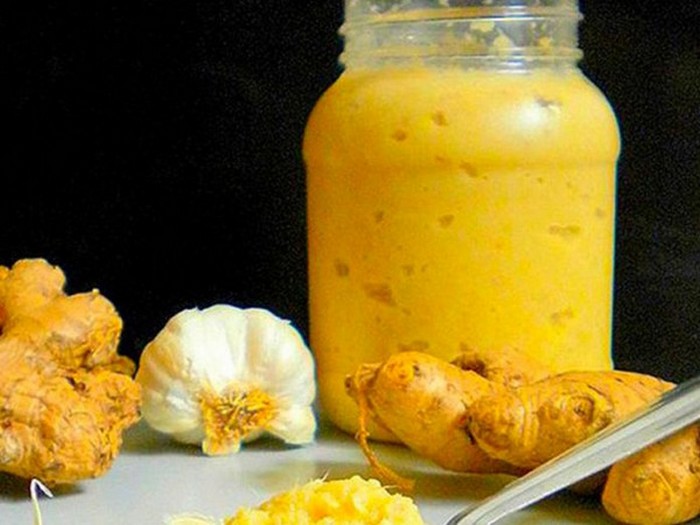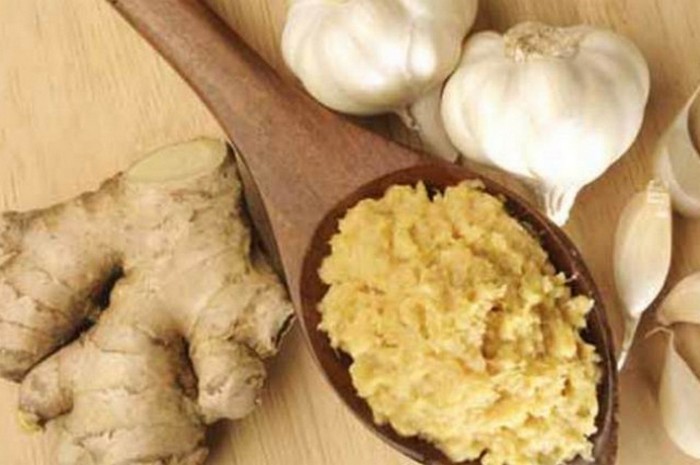 Készíthet fokhagyma gyömbérpasztát. Ehhez vesszük kétszáz gramm gyömbérgyökér és háromszáz gramm fokhagyma. gyökér megtisztítjuk a felső héjától és átjutunk a darálón (töröljük le egy finom reszelőn), majd ismét ezt keverjük össze egy turmixgépben, adjon hozzá forró paprika hüvelyet, ha szükséges, és alaposan keverjük.