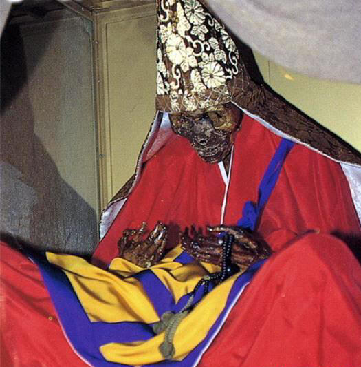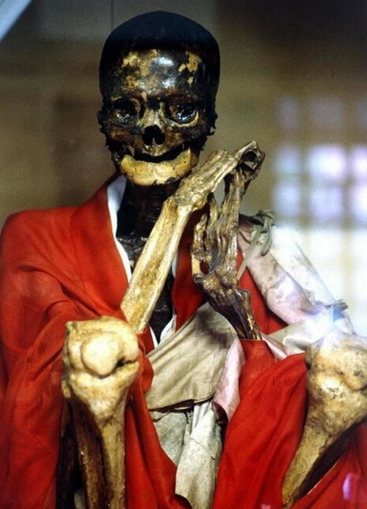 Az északi japán Yamagata prefektúra egész területén megtalálható körülbelül két tucat mumifikálódott japán szerzetes néven ismert Sokushinbutsu, aki ilyen módon okozta saját halálát, ami önmumifikációhoz vezet. Ez volt az első gyakorlat. kb. ezer évvel ezelőtt egy Kuukai nevű szerzetes használt A Mount Koya templomkomplexum, a Wakayama prefektúrában. Kuukai volt a buddhista szekta alapítója, Shingon, amelynek központjában fektesse a megvilágosodást fizikai büntetés útján. sikeres az önmumifikáció tíz évbe telt. A pletykák szerint sok száz a szerzetesek megpróbálták elérni, de csak eddig testek 16-tól 24-ig.