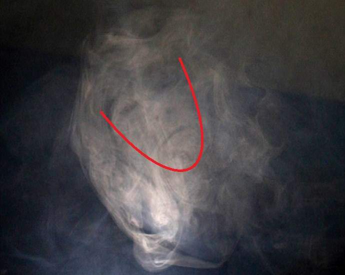 Egy régi épület kivilágítatlan főcsarnokában találták meg, Williamson bekapcsolt egy hordozható füstgenerátort LED-lámpával, és a szoba hamarosan ködrel tele volt. Aztán Stuart elővette a kamera véletlenszerű képeket készített. Éppen ez volt szakember ötlete – hogy valami szokatlanat elkapjon a fehér klubokban dohányzik -, és ő nyilvánvalóan nem veszített el. Később figyelembe véve fogadott képeket, a szakértő meglepődve találta meg az egyiket egy hihetetlenül tiszta női arc képződött sötétben köd.