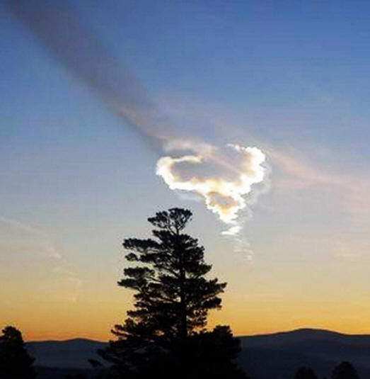 Ábrán Az 5. ábrán egy fényképet kapnak a tollazatról annak utolsó szakaszában szórás. A kép világosan mutatja, hogy sötét színű lett. Ez azt jelzi, hogy a felhő gőzfrakciója elpárolgott, és maradtak, csak mikrogömbök – fagyott olvadékcseppek meteorit anyag. A sötét hurok nagy szögméretei tehát jelzi lenyűgöző tömegét. Röviden, itt világosan bemutatva, ami végül megfordult Cseljabinszk meteorit.