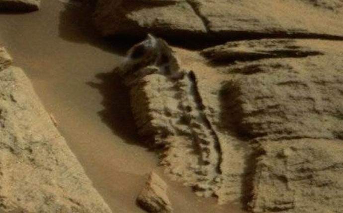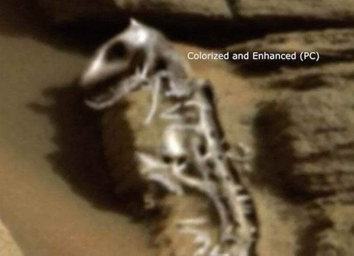 Az egyik kép a rádióvezérelt készülékkel készült a marsi kráter, Gail közelében, a földlakók felfedeztek valamit nagyon emlékeztet egy óriás hüllő csontvázára. szakemberek úgy vélte, hogy a “kíváncsiság” megragadta egy bizonyos marsi csontjait lények már régen meghaltak. A kutatók szerint, ha a nagyításhoz jól láthatóan egy hosszúkás koponya található szemhüvelyek és alsó állkapocs, valamint egy ívelt hosszú gerinc állat.