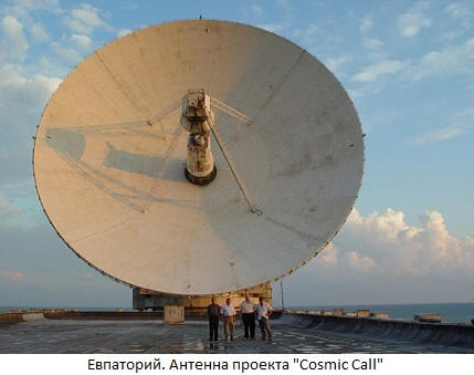 Kozmikus hívás és gyermeküzenet a projekt részeként Kozmikus hívás 1999-ben ismét az ECDS-ből 4 ülésen volt küldött több mint 50.000, osztva 2 blokkba. Az első tartalmazza tisztán tudományos információ (mint „Arecibo üzenet”), és a második – mindenki személyes üzenete, aki fizetni tudott érte. Az űrbe repült még “Brazília a bajnok!” Ilyen érdekes lépés történt projektfinanszírozás. 2003-ban az encore kísérlet volt ismételni. 2001-ben ismét az Evpatoria-tól az üzenet, amely volt egy összetett szerkezet, amely zenei fragmentumokat, képeket és szövegeket. Ezért reklámozás céljából gyermekeket vontak be a projektbe ez a csillagközi üzenet a történelemben maradt, mint „Gyerekek “Az utolsó promóciók közül megjegyzés:” Üzenet a Földről ” (2008. október 9.) és a “Hello from Earth” (2009. augusztus 28). Több volt készletek, de ez már tiszta show volt a pénzszivattyúzás kedvéért, nem nincs tudományos értékük.