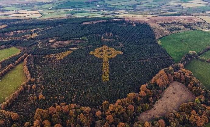 Ír újságírók helikopter repül a megye felett Donegal északon megbotlott egy kis helyi érzés. A Newsboys váratlanul felfedezte az erdőt egy tűlevelű tömb, amelynek közepén jól látható egy hatalmas kelta kereszt állt elő, más néven a kereszt Saint Columbus. Keresztény szimbólum, amely egy körből és egy keresztből áll, hosszú ideig el volt rejtve az emberi szemtől.