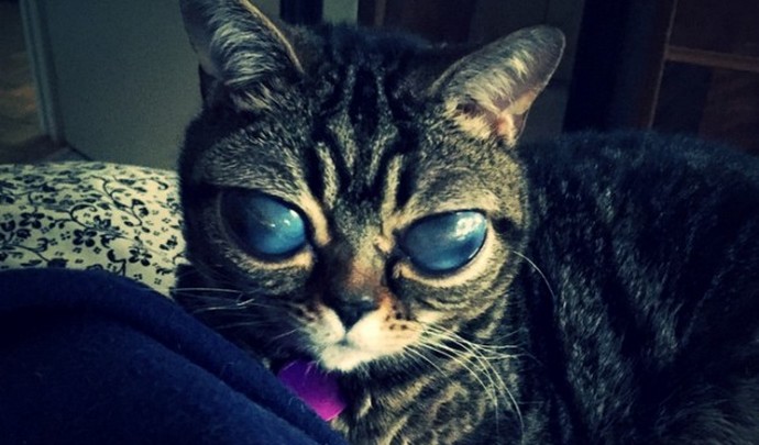Ez az oka annak, hogy ez az Egyesült Királyságból származó macska Matilda néven szerepel Az Internet és beceneve – idegen. Természetesen igazán szeme ő teljesen más, ezek lencsék, de macskára helyezték őket távol az egzotikus megfontolásoktól. Csak egy cica, akivel született látáskárosodás. A tulajdonosok hamarosan észrevették, hogy Matilda kissé kaszál, majd hirtelen hirtelen kinyúlt a tanuló …