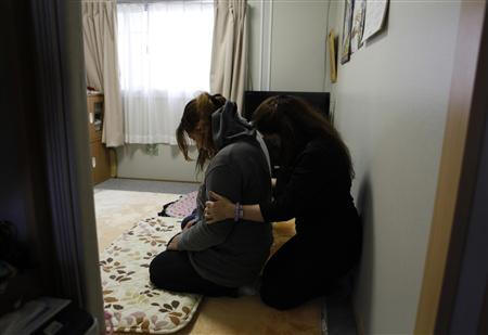 Fotó nyílt forrásokból A képen: az ördögűző Kansho Aizawa (R) lelki tisztítás rituáléját végzi az ideiglenes otthonában lévő nők számára Miyagi prefektúrában, a földrengés második évfordulójának előestéjén, és Cunami, 2011. március 11.