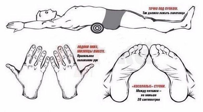 Egy ilyen testmozgással arányos testmozgás szükséges Napi öt perc, és ennek teljesítéséhez személyre van szükség csak van egy fürdőlepedő, ahonnan a henger fel van göndörítve (viszonylag feszes), vastagsága 8-12 centiméter.