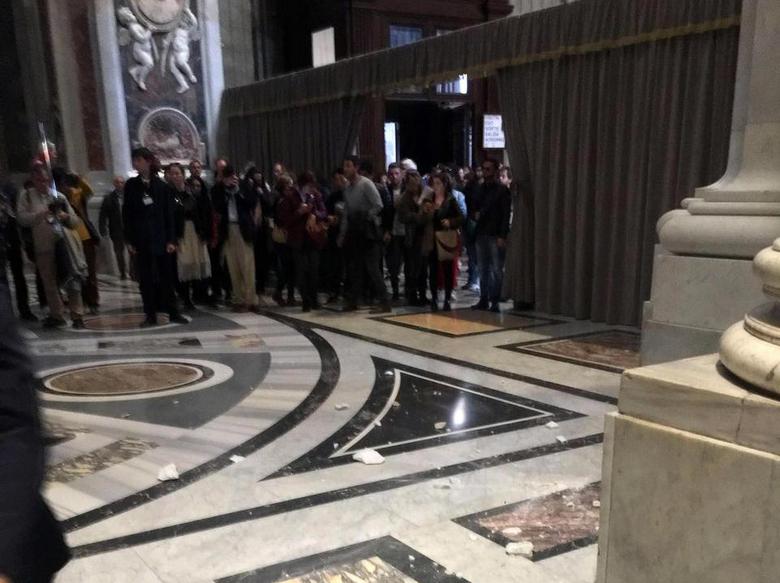 Nem volt egy nap telt el a pápa ilyen hangos kijelentése után, amikor a vakolat hirtelen esett le a Szent Péter-bazilika kupolájáról. és a katolikus húsvét előtti Szent hét közepén van – már most sok zarándok feje, akik beáramlottak ezekbe a húsvétba napokban a Vatikán akár 5 millióra is számíthatott.