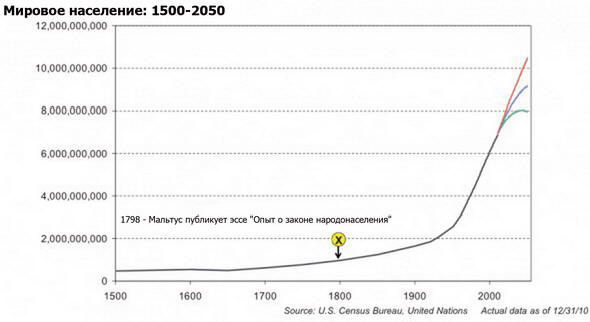 – Az elmúlt 200 évben a világ népessége felrobbant – hogyan és megjósolta a Malthust. Amit nem tudott előre látni olaj- és egyéb természeti erőforrások felfedezései, amelyek (átmenetileg) támogassa a lakosság robbanását. Ezek az erőforrások most csökkennek …