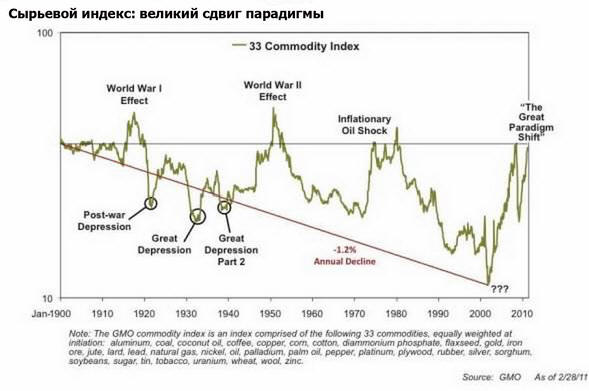 * Statisztikai szempontból a legtöbb árucikk mostanáig eddig van a korábbi hanyatlásából, amelyet ez eléggé meghoz valószínű, hogy a régi trend megváltozott – ami valójában az egy paradigmaváltás – talán a legfontosabb gazdasági egy esemény az ipari forradalom óta.