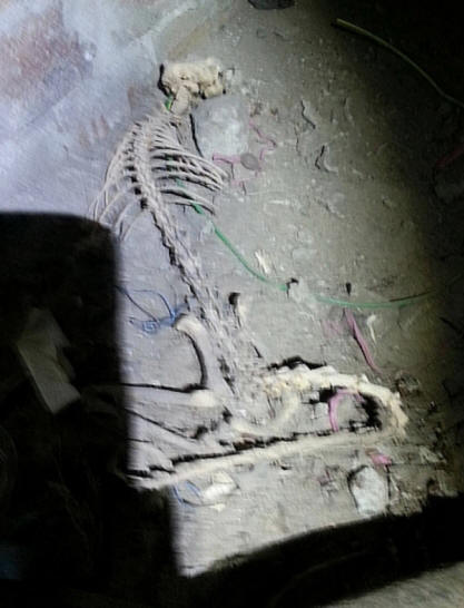 Egy ismeretlen lény csontváza, amely nyilvánvalóan otthon lakóház alagsorában élt, felfedezte egy villanyszerelőt, aki új vezetékeket végzett a padló alatt.