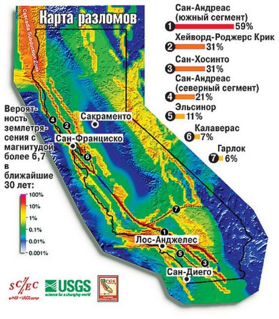 Jurij Fialko, a Scripp Institute of Oceanography professzora közösen kollégáival megpróbálták értékelni a lehetséges szeizmikus következményeket szakadék, ismét Dél-Kaliforniában. Az alapot vették egy 7,8 pontos földrengés az epicentrummal a Bombay Beachben. Számítások szerint Ibolya, remegő föld körülbelül egy percig tarthat. Ilyen erővel és időtartamuk, akár a földrengésálló épületek is egyszerűen nem ellenállnak a terhelésnek és az összeomlásnak. A miszer legkonzervatívabb becslései szerint Fialko, ilyen sokkok esetén legalább 1800 ember fog meghalni, több tízezer megsérülnek. A gazdasági kár nem lesz kevesebb, mint 200 milliárd dollár. Hasznos tanácsként az intézet professzora Az Oceanográfia Scripp azt ajánlja, hogy szerezzen minden államot egy alapvető vészhelyzeti terv. Biztosítani kell a tűzoltó készülékeket és a berendezéseket elsősegély. Fontos az ivóvízellátás is, amely elegendő legalább néhány napig.