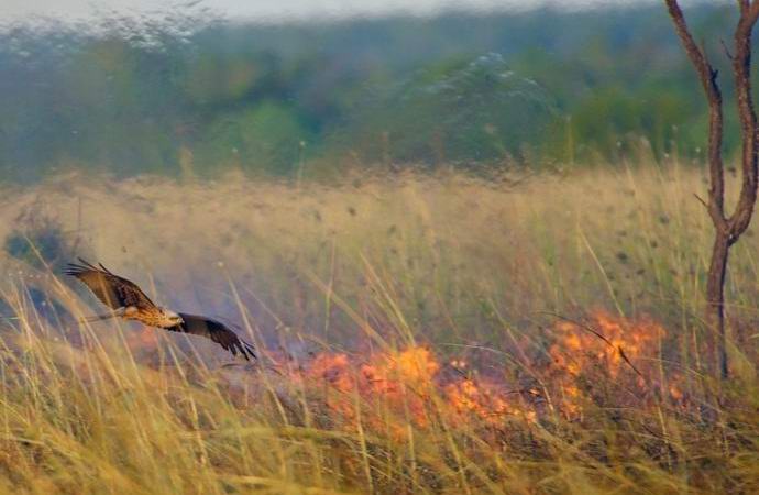 A fő gyújtogatók szerint a tudós barna sólymok és fekete sárkányok, amelyek erdőtüzekre lazítanak gyíkok, rágcsálók és kígyók menekülnek a katasztrófa elől.