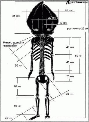 Patológus, Stanislav Samoshkin, akinek Bendlin bemutatta múmia, arra a következtetésre jutott, hogy nem férfi. A csontváz szerkezete nem az átlagolt emberi normákkal összhangban a koponya állt 4 csontból áll. Azt azonban nem tudta megválaszolni, hogy mi volt akkor. ilyen nem látott csontvázokat, és nem mentek át az intézetben. külön Samoshkin megjegyezte, hogy a múmia koponyaagyi ürege sok több, mint egy arc. A Földön csak ez a szolgáltatás rendelkezik a személy.