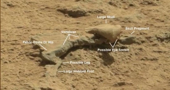 A csontvázhoz nagyon hasonló tárgy azonnal felhívja a figyelmet. Sőt, ha a csontokat nyújtható köveknek lehet nevezni, akkor ennek a koponya a marsi szörny egyértelműen csontos és valószínűleg ide tartozott egy ilyen lény (lásd az alábbi képet).