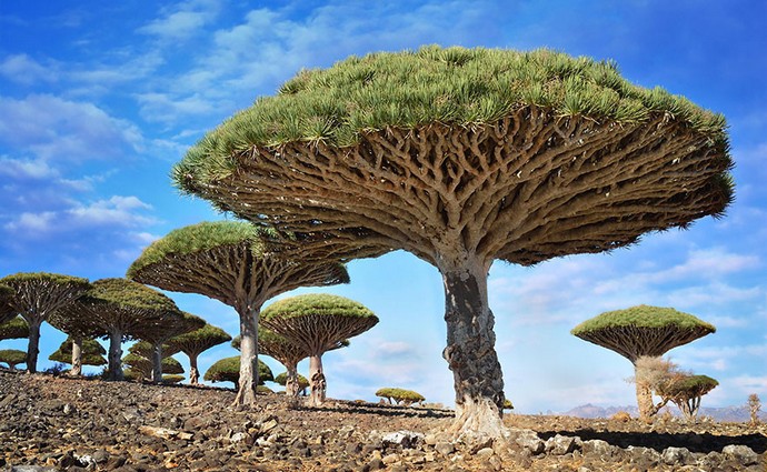 Jemen szigetén Sokot érdemes megcsodálni az egyedülállót fák – dracenesek