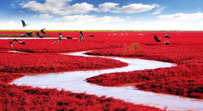 És Panjin egyszerűen elbűvölő bíborvörös strandja Kína �