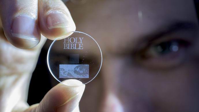 Az Optoelektronikai Kutatás Tanszék alkalmazottai A Southamptoni Egyetemen sikerült innovatív módszert kifejleszteni digitális adatok tárolása, lehetővé téve az óriás tárolását információmennyiség végtelenül hosszú ideig. Mint a egy vékony, átlátszó anyagból készült lemez kinyúlik egy öt rubelű érme mérete.