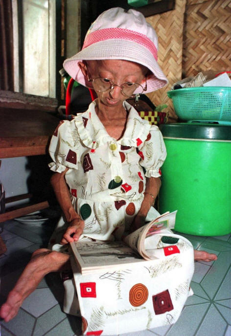 fénykép nyílt forrásokból 1. Progeria. Egy gyermekben fordul elő 8 000 000. E betegségre visszafordíthatatlan változások jellemzőek. a bőr és a belső szervek idő előtti öregedése testet. Az ilyen életkorú emberek átlagos élettartama a betegség 13 éves. Csak egy eset ismert, amikor a beteg elérte negyvenöt éves korát. -Ban rögzítették Japánban.