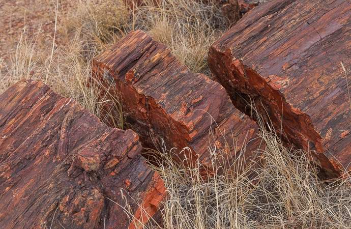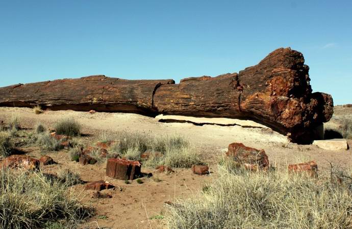 Megkövesedett bőröndök vannak a sivatagban, a bejáratnál kezdve a park. A tudósok összesen 9 fafajtát számoltak be. A triász végén időszakban a helyi növények estek és időről időre lefedték őket az üledékes kőzet rétege hamuval a vulkán közelében. Megkövesedett, az organikus anyagok fokozatosan felváltottak szilícium-dioxid és a vas-oxidok keveréke kövületeket eredményez szép látszó narancs és piros színű.