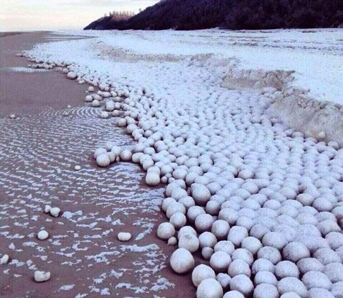 Nyda falu lakói a Jamali-félszigeten Nyugat-Szibériában rejtélyes természeti jelenséggel szembesülve. Az öböl partján Az Ob-öböl óriási számú nagy gömböt alkotott sűrű hó. A jégtömbök átmérője harminc és 30 mm ötven centiméter. Egyes helyiek azt sugallják a rendellenesség oka a heves havazás, amelynek mögött ezt követõen olvadás és váratlan vihar követte.
