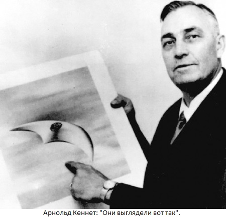 Ez volt az, amikor az egyik cikkben megjelentek “repültek és úgy ugrott, mint egy vízre csészealj. “A kép nagyon fényesnek bizonyult és “repülő csészealjak” (a “repülő csészealjak” orosz értelmezésében) újságból újságra vándorolni kezdett, és sok éven át beépült UFO, bár Kenneth soha nem mondta, hogy lát tárgyakat hasonlított a csészealjak.