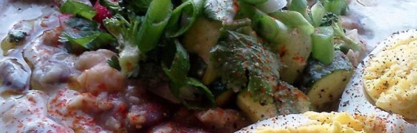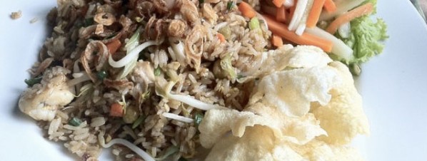 Saláta kolbásszal (miből készül a kolbász), garnélarákkal és csirkével – Indonéz reggeli.