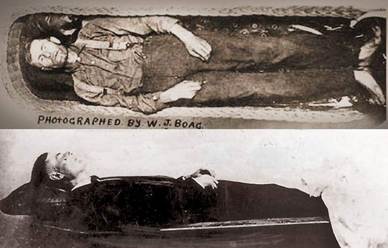 Hirtelen és szörnyű felfedezés várt a jelenlévőkre. K általános sokk, a “dummy” csupasz csont volt. Amikor hívtak rendõrség, egy emberi holttestet találtak egy vörös viaszréteg alatt. Kiderült, hogy a több mint hat évtized mumifikált maradványai téve egy manökennek, különféle karneválokban és beadványok. A lelet egy orvosi ellenőrnek adta át, aki óvatosan tanulmányozta és segített a rendészeti tisztviselőknek a holt ember azonosításában. Kiderült biztonságos krakkoló és betörő. Elmer Mackerdy, széles körben ismert a Amerika fenomenális rossz szerencséjével.