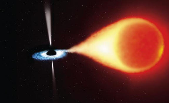 A fekete lyuk az oldalát felé húzza az elhaladó csillag sokkal erősebb, mint az ellenkezője. ezt az erős árapály-erő meghúzza a csillagot, és a gáz leesik csillagok egy fekete lyukban. A csillagászok arra a következtetésre jutottak, hogy a fekete lyukak nem születnek hatalmas, hanem fokozatosan növekszik a gáz és galaxisok csillagai.