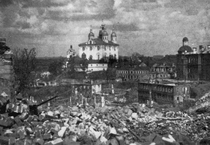 Szinte ugyanaz a dolog, ugyanakkor csak be fényesebb forma fordult elő Smolenszkben. A nácik gyakorlatilag törölték a föld felől ez a dicsőséges orosz város, egyedül hagyva őt romok, még az egyemeletes házak is súlyosan érintettek, nem is beszélve felhőkarcolók. És csak az egyházak, beleértve a főépületet is A város legmagasabb hegyen álló Smolenszki templom megmaradt biztonságos és megbízható. Szinte misztikusan is túlélték a Isten háborúja az ókori Novgorod templomai, Vitebsk, Moszkva régió Zvenigorod és sok más oroszországi város.