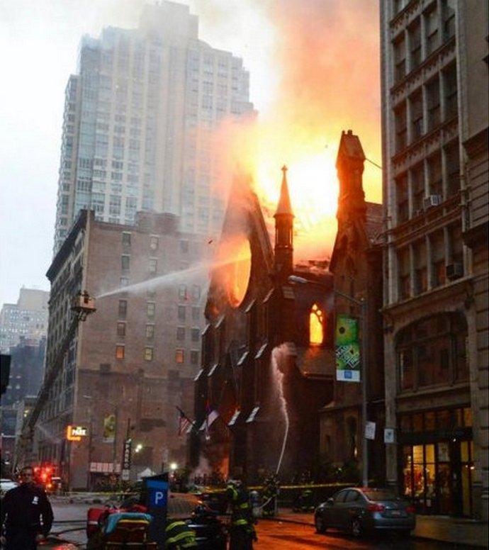 Egy még meglepőbb eset történt a közelmúltban, szó szerint május első napján, húsvétkor (!) New Yorkban leégett Manhattan ortodox egyház St. Sava. Igaz, tűz történt amikor még senki sem volt a katedrálisban, és ezért senki sem az épület őrét ebben az esetben nem sérült meg, és mégis …
