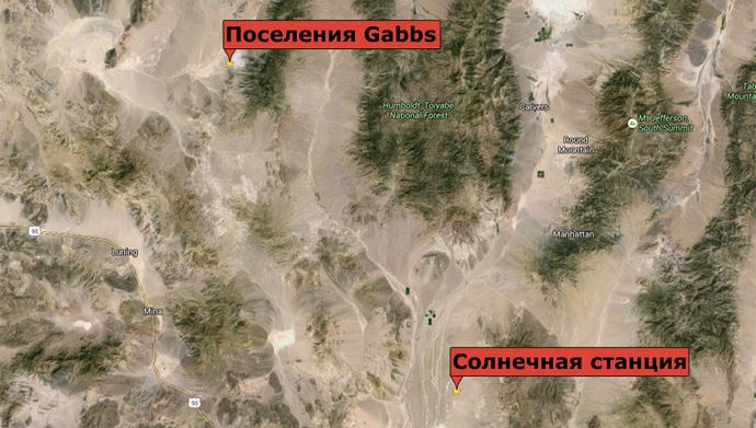 A szigorú online ufológusok azonnal ellenőrizték az elrendezést információk, továbbá a Google Maps program segítségével, a Ennek eredményeként kiderült, hogy csak a sivatag ezen a pontján Gabbs falu közelében hatalmas napsütés van erőmű, kör alakban.