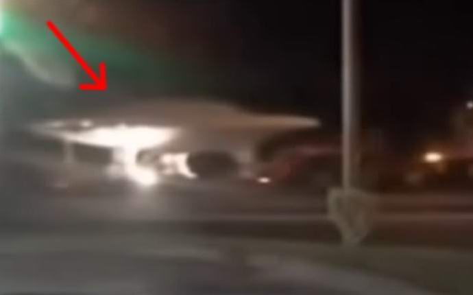 Kísért egy teherautót, amely a légierő felé szállt az alap nem más, mint egy fényes “repülő csészealj”. kamionos, a konvojált UFO-t a videóban forgatva kénytelen volt megállni kereszteződés, hogy kihagyja a villogó szirénautók autópályáját rendészeti tisztviselők.