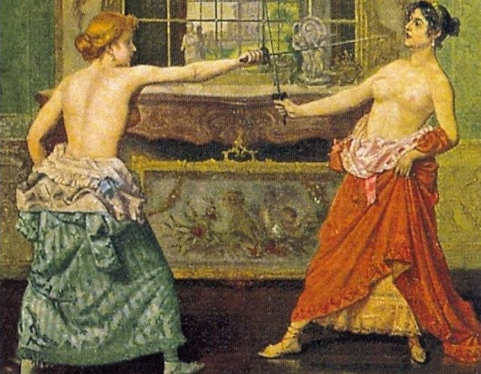 Úgy gondolják, hogy az első női párbaj Nápolyban 1552-ben történt évben. A Diambra de Pettinello és az ember miatt kardokkal harcoltak Isabella de Carazzi Ez a harc állítólag a Jose de Ribera (Spanyolország) “Női párbaj” festménye.